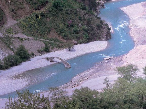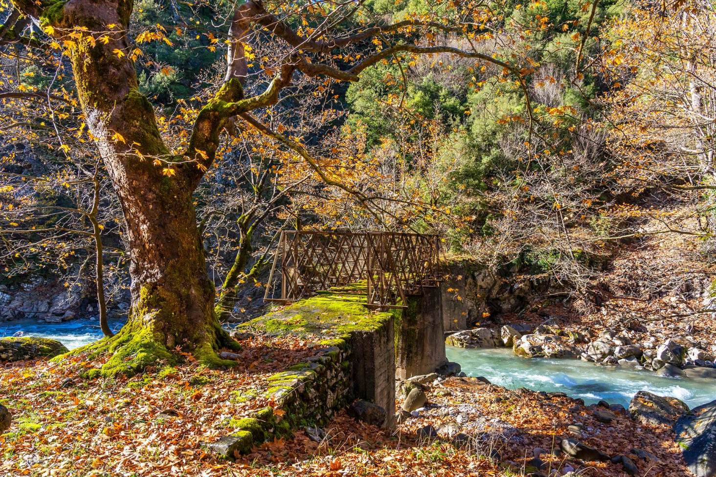 Συνεχίζοντας και φτάνοντας στο ποτάμι θα περάσετε τη σύγχρονη γέφυρα τύπου μπέλεϋ. Δεξιά, στα 50 μέτρα θα αντικρύσετε το σπουδαίας αρχιτεκτονικής πετρογέφυρο του Πετρωτού. Φτάνοντας στον Αχελώο λίγο πιο πάνω από τη σημερινή γέφυρα, υπάρχουν τα απομεινάρια του μεγαλύτερου μονότοξου γεφυριού των Βαλκανίων, η ιστορική γέφυρα Κοράκου.