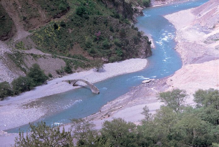 Ρωμαϊκή δίτοξη, ίσως τρίτοξη γέφυρα του 16 π.Χ. μέσα στην κοίτη του Αχελώου.